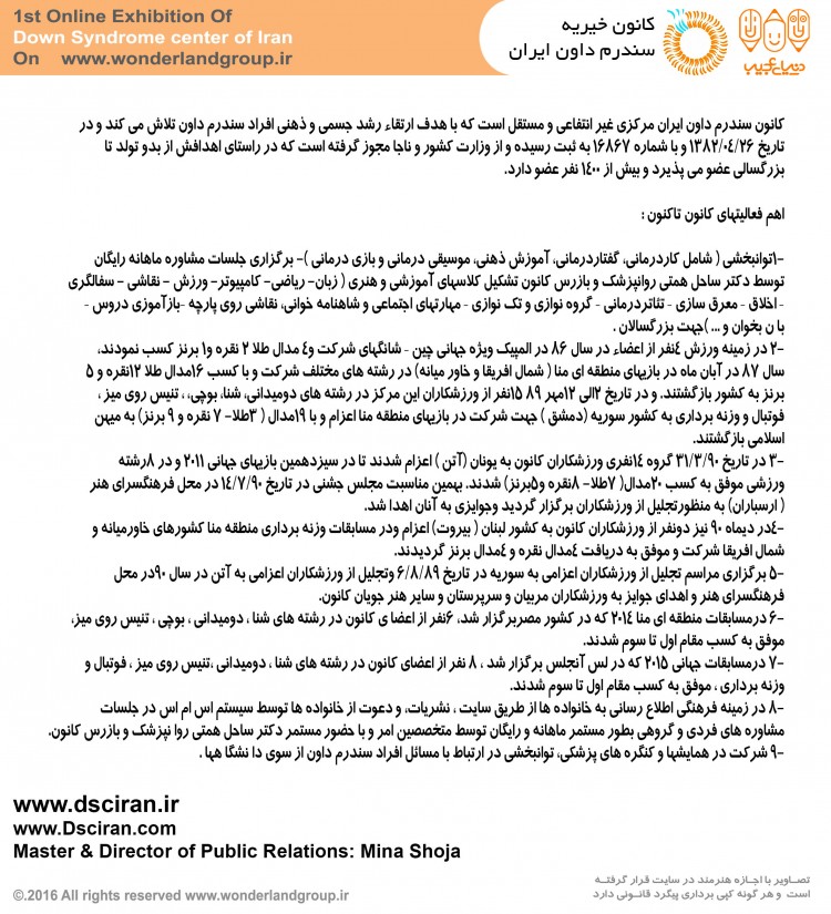 1st Online Exhibition Of Down Syndrome center of Iran On www.wonderlandgroup.ir | 2017
