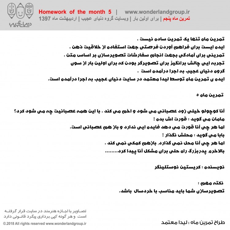 تمرین ماه پنجم | برای اولین بار | اثر برگزیده : نسرین یاوری | مدیر هنری : لیدا معتمد | اردیبهشت ماه 1397