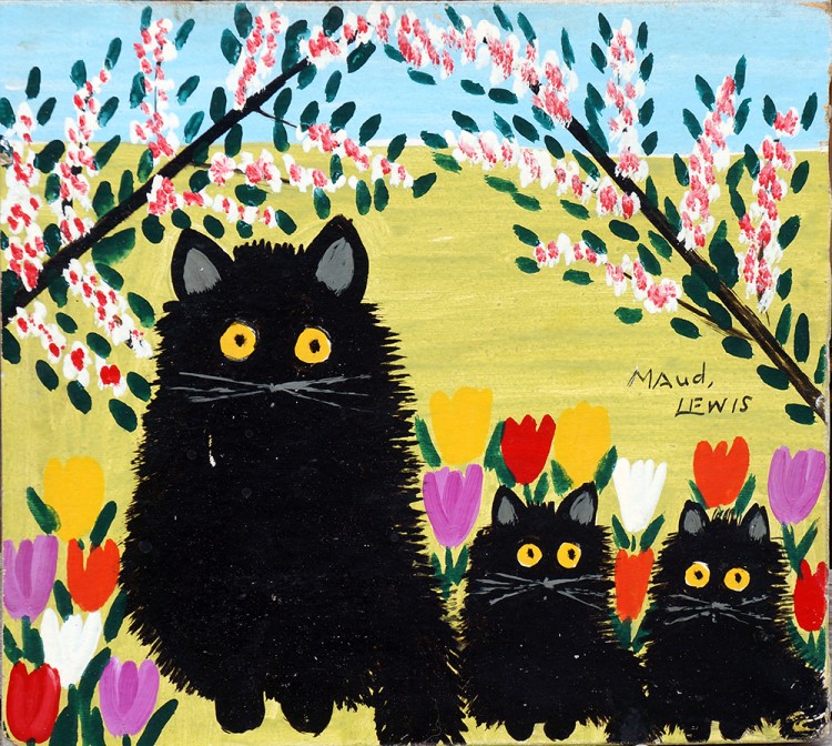 Early Maud Lewis paintings from the 1940s are quite rare. A large collection of Lewis' work can be found in the Art Gallery of Nova Scotia (AGNS). The AGNS occasionally displays the Chaplin/Wennerstrom shutters (now part of the Clearwater Fine Foods Inc. collection). This collection comprises twenty-two exterior house shutters that Lewis did in the early 1940s. The work was done for some Americans who owned a cottage on the South Shore. Most of the shutters are quite large, at 5 ft x 1 ft.6 inches. Lewis was paid 70 cents a shutter.