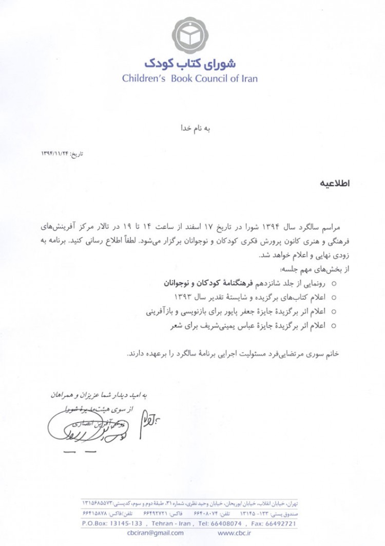 کلیهٔ همکاران محترم فرهنگنامه، شورای کتاب کودک و سایر علاقهمندان دعوت
